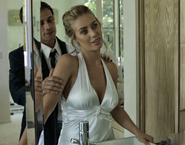 После свадьбы, невеста пошла в дамскую комнату, поправить макияж, где ее ждал сюрприз. Любовник пришел на праздник без подарка и решил поздравить красотку хорошим сексом. Парень запер дверь на замок и трахнул зрелую женщину в подвенечном платье. Грязная потаскуха мечтала о первой ночи с женихом, но от большого члена опытного ебаря не смогла отказаться и отдалась, как последняя шлюха.