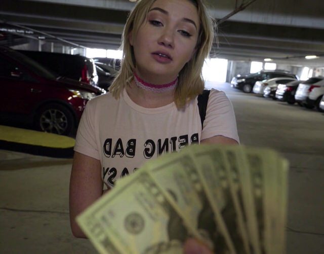 Безлюдная парковка рядом с торговым центром оказалась отличным местом для отработки пикаперских навыков. Возвращающаяся с шоппинга красотка торопилась к своей тачке и всячески пыталась отделаться от назойливого молодого человека, семенящего за ней с камерой наизготовку, но вмиг заинтересовалась, стоило тому только сделать ей выгодное коммерческое предложение. Отслюнявив ей немного наличных за демонстрацию натуральных прелестей, парень вскоре предложил куда большую сумму за полноценный интим.