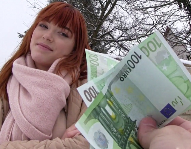Немецкая девочка приехала в Чехию посмотреть местные достопримечательности, а в итоге стала достопримечательностью для одного из местных ребят. Парень предложил соске за небольшую плату засветить свои буфера, что та с удовольствием и сделала прямо на улице, несмотря на мороз и лежащий вокруг снег. Дальнейшее общение продолжилось уже в припаркованном поблизости автомобиле. В тесной обстановке красавица сделала незнакомцу минет, после чего спустила штанишки и дала засадить толстый хер в свою пилотку.