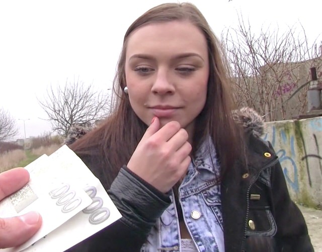 Пикапер перехватил идущую на автобусную остановку девушку, начав задавать вопросы интимного характера, от которых стеснительная особа начала неловко переминаться с ноги на ногу. Как оказалось, девочке очень нужны деньги, но зарабатывать их позированием на камеру незнакомцу она не решается. Пришлось мужику отвалить аж целых две тысячи, чтобы узреть наконец-то натуральные сисечки. А вот уже далее все пошло как по маслу, получив легкие деньги, бабенка моментально избавилась от комплексов и захотела заработать еще.