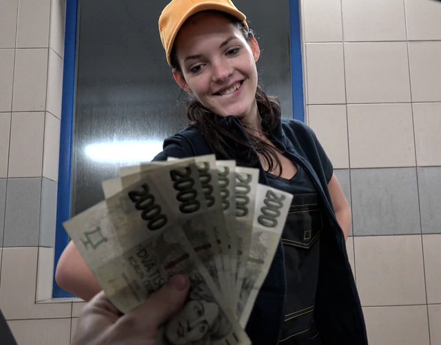 Решив вечером заехать на автомойку, богатенький водила положил глаз на местную работницу – миловидную брюнетку с привлекательной мордашкой и стройным телом. Увидев то, с каким трудом ей приходится пахать целую смену за жалкие гроши, парень быстро определил эффективный способ залезть к девочке в трусики. Небольшая пачка купюр крупного номинала сразу же заставила красотку позабыть о моральных принципах и начать предоставлять клиенту дополнительные услуги, включающие оральный и вагинальный секс.