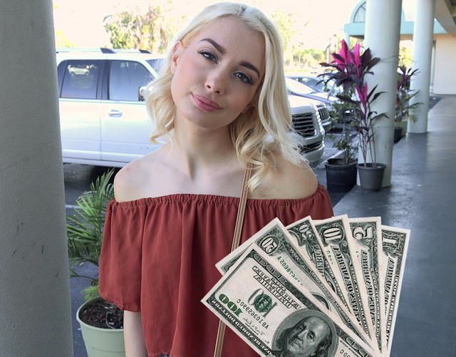 Пикапер заприметил на улице молоденькую самочку и решил опробовать на ней свои навыки. Только вот сучка явно встала не стой ноги – стоило только парню ее поприветствовать, как в его адрес тут же послышался посыл по известному адресу, после которого девочка поспешила удалиться. К счастью для него, в кошельке завалялось несколько крупных банкнот, которыми ебарь все-таки сумел привлечь внимание блондинки. Не смотря на наличие бойфренда, она с удовольствием приняла материальный подарок и в уединенном месте его отработала.