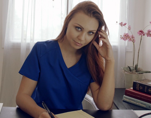 Жесткий секс с симпатичной медсестричкой с красивыми голубыми глазами