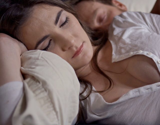 Проснувшись рано утром и увидев перед собой свою молодую грудастую супругу, Райан не стал терять время на пустые разговоры, а принялся сразу же будить девушку. Она очень обрадовалась, почувствовав проворные пальцы опытного любовника у себя в трусиках, и отблагодарила мужа страстным поцелуем. Совсем скоро соска удобно устроилась между ног у мужика, начав активно насасывать большое хозяйство. А ближе к финалу тот ее жестко оттрахал сзади, уложив на ковер рядом с кроватью, и заполнил розовую щелку своей спермой.