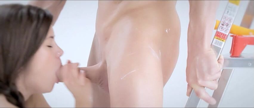 Занимаясь покраской стен в своей новой квартире, молодая парочка решила сделать небольшой перерыв и прямо на месте начала страстно целовать и раздевать друг друга. Девочка с большим энтузиазмом опустилась на колени перед своим любовником, чтобы расстегнуть ремень его джинсов и высвободить наружу увесистый член, который совсем скоро оказался почти полностью погруженным в теплый и влажный ротик, а затем и в киску. Парнишка долго трахал партнершу сзади и в миссионерской позиции, после чего та позволила ему кончить себе на животик.