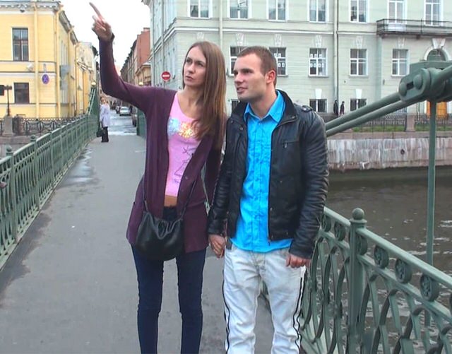 Изысканная пара из питера прогуливается по набережной, наслаждаясь архитектурными красотами великого города. После небольшой экскурсии, у молодых просыпаются чувства, и они отправляются домой, чтобы завершить день хорошим сексом в теплой постели. Брюнетка позволяет себя раздеть и принимается за работу. Мягкими губками она засасывает толстую шишку и, зажав основание пениса в кулачке, возбуждает кавалера минетом. Почувствовав, что любимый хочет овладеть ее дырочкой, девушка садится на кол, попкой к парню и ритмично двигает булками. Вагинальный трах только раззадоривает партнера и после разогрева, он пристраивается сзади и дерет подругу в анал лежа на боку.