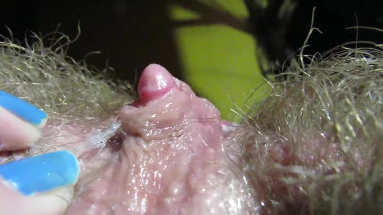 Симпатичную молодую девушку природа одарила солидных размеров клитором и повышенной чувствительностью к разным возбудителям. Стоит ей остаться наедине с собой, как у нее тут же возникает желание запустить руку себе между ног, нащупать заветный отросток и задрочить его до достижения оргазма. Впрочем, переходить к активной мастурбации бабенка не спешит – сначала она предпочитает раздвинуть пальчиками заросли на своем волосатом лобке и с близкого ракурса показать торчащий подобно бугорку клитор, а уже потом начинает себя удовлетворять.