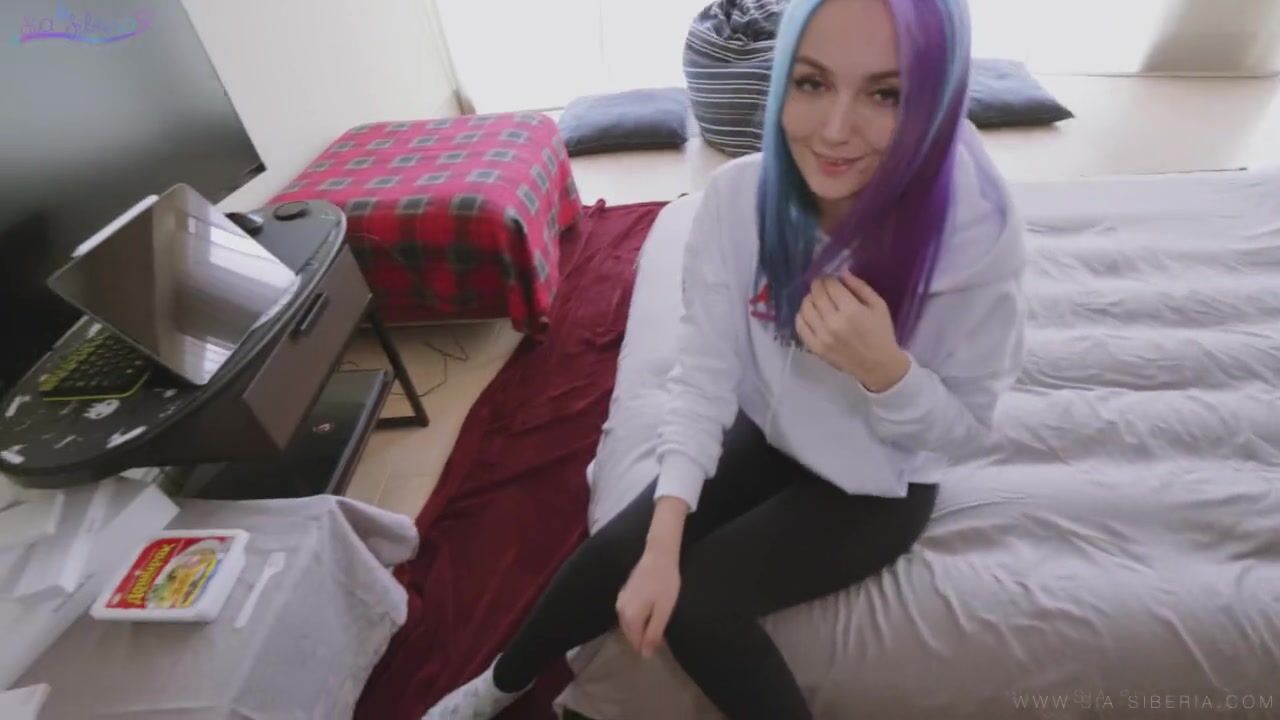 Неформалка с покрашенными в кислотный цвет волосами прогуливалась по городу и заметила молодого человека на дорогом Мерине. Решив с его помощью немного поправить свое печальное материальное положение, она напросилась в гости к парню в апартаменты, где быстро перешла от совместного просмотра видео на планшете к ласкам полового члена через штаны нового знакомого. Само собой, это было лишь прелюдией для дальнейшего проникновения во все доступные дырочки, включая очко сучки. К несчастью для нее, мужик оказался тем еще кидалой.