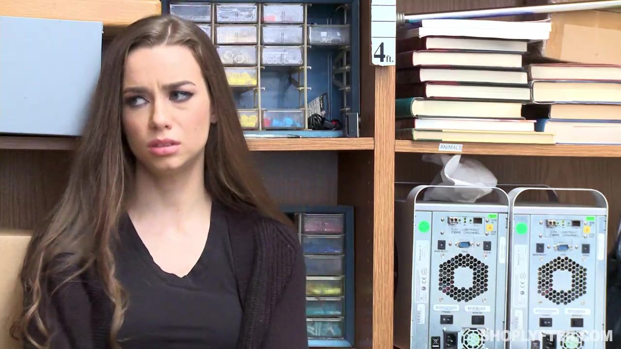 Охранник выебал наглую воровку с небритой киской за кражу в магазине